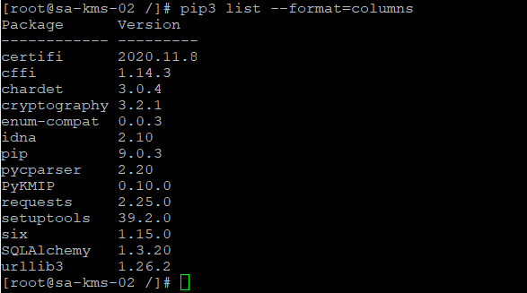 • Check that the required modules were installed using the pip3 list --format=columns command.