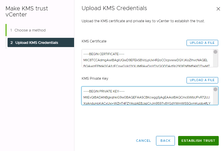 • Click ESTABLISH TRUST > Make KMS trust vCenter.