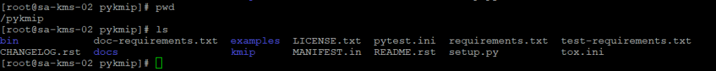 • Change to the /pykmip/bin folder, assuming /pykmip is the root folder of the cloned git repository:
