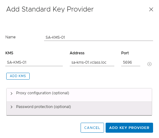 Now you are ready to use your newly configured KMS as a Standard Key Provider in vCenter Server