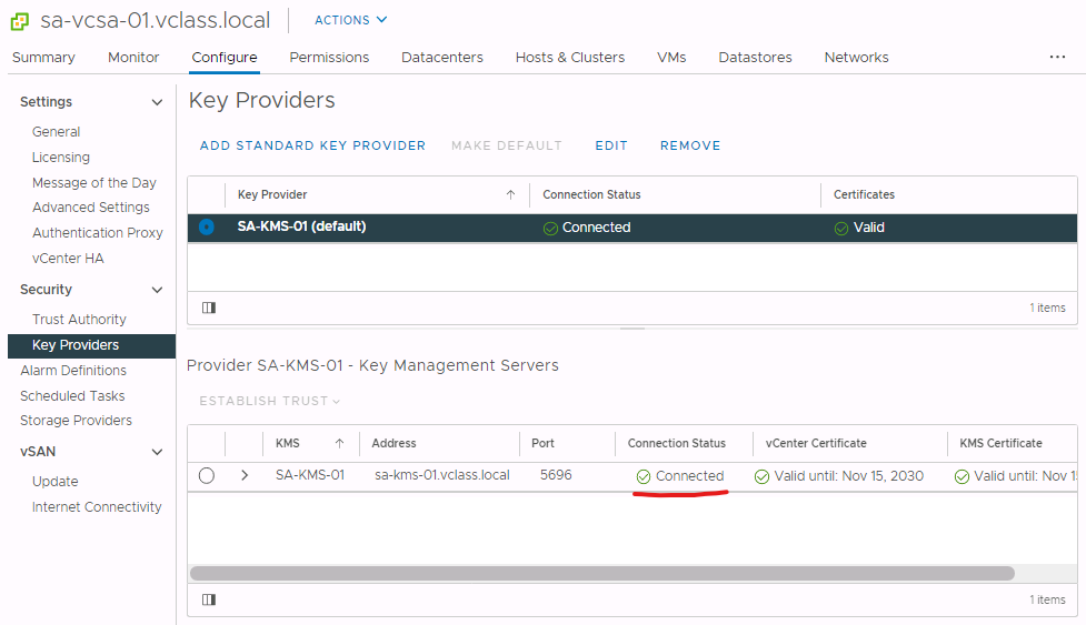 Now you are ready to use your newly configured KMS as a Standard Key Provider in vCenter Server
