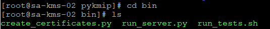 • Change to the /pykmip/bin folder, assuming /pykmip is the root folder of the cloned git repository: